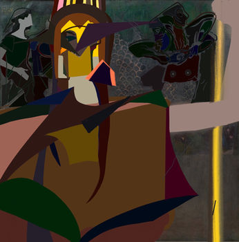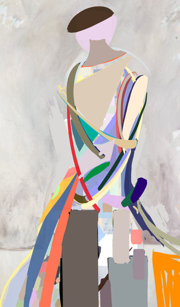 Drawing on Pallas Athene , I created Armour to reinterpret the classical figure through abstraction, exploring themes of female multiplicity and strength. Inspired by Picasso's Las Meninas series, which deconstructs Velázquez's iconic painting, I employed flat color planes and layered geometric shapes to construct depth and complexity, diverging from traditional chiaroscuro techniques. Each fragmented shape represents a distinct perspective, reflecting the multifaceted nature of female identity and its fluidity.